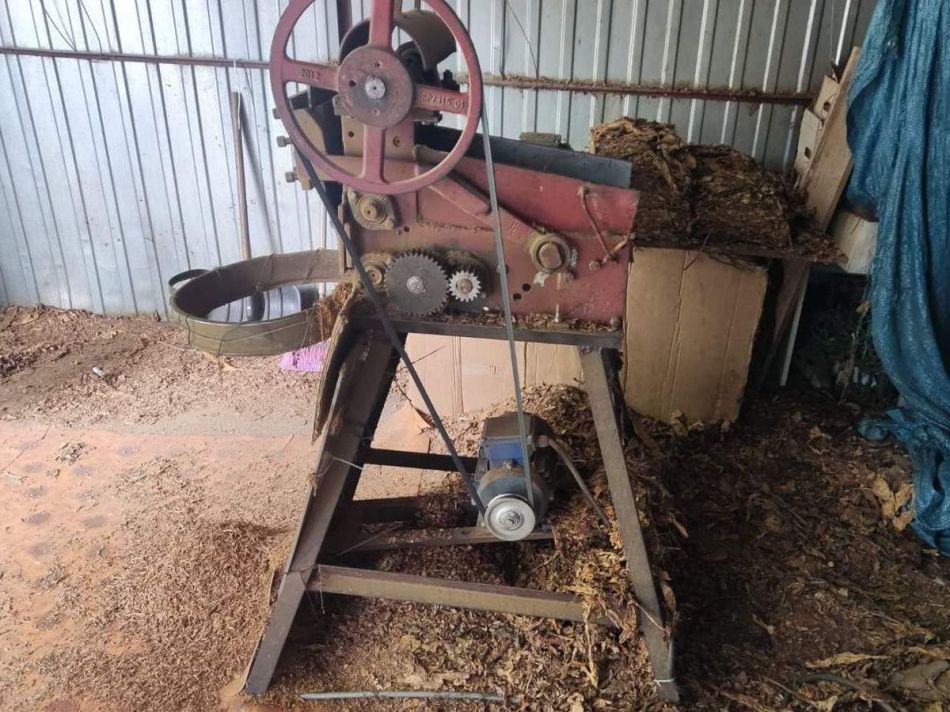 [2/2] Policjanci zabezpieczyli nielegalny tytoń oraz maszynę do jego cięcia.