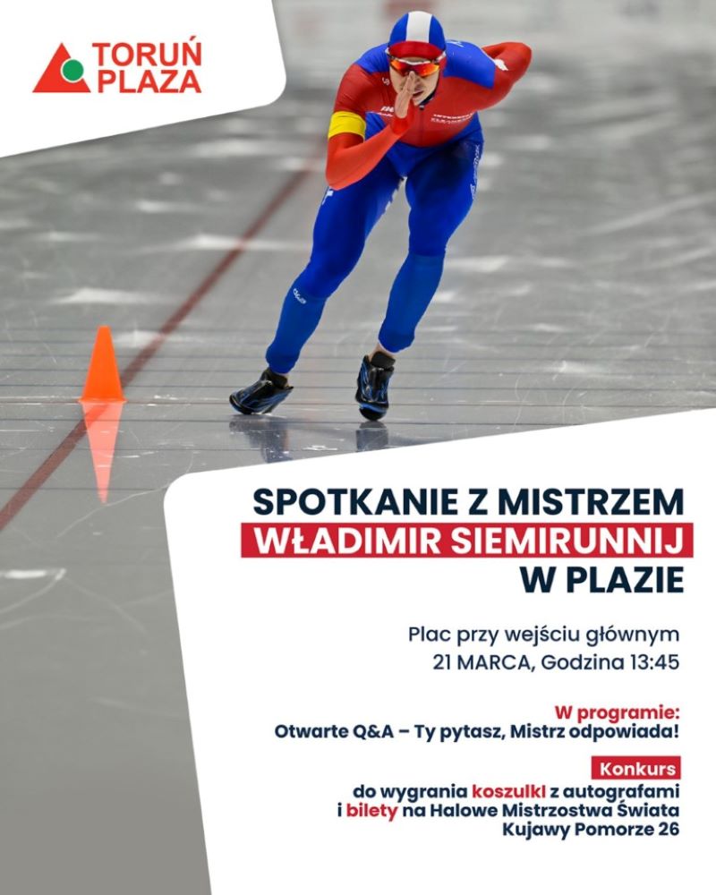 Spotkanie rozpocznie się o godz. 13.45 w CH Plaza, które poprowadzi znany dziennikarz radiowy. Kibice, oprócz spotkania polskiego medalisty będą mieli również szanse na wygranie koszulek z autografami znakomitego łyżwiarza.Polska jest moim domem, w którym zostałem przyjęty jak swój. Bardzo za to dziękuję i cieszę się, że mogę odwdzięczyć się w taki sposób, czyli zdobywając medal olimpijski. Lubię spotkania z kibicami i wszystkich serdecznie zapraszam do Centrum Handlowego Plaza – mówi Semirunnij, który będzie gościem specjalnym